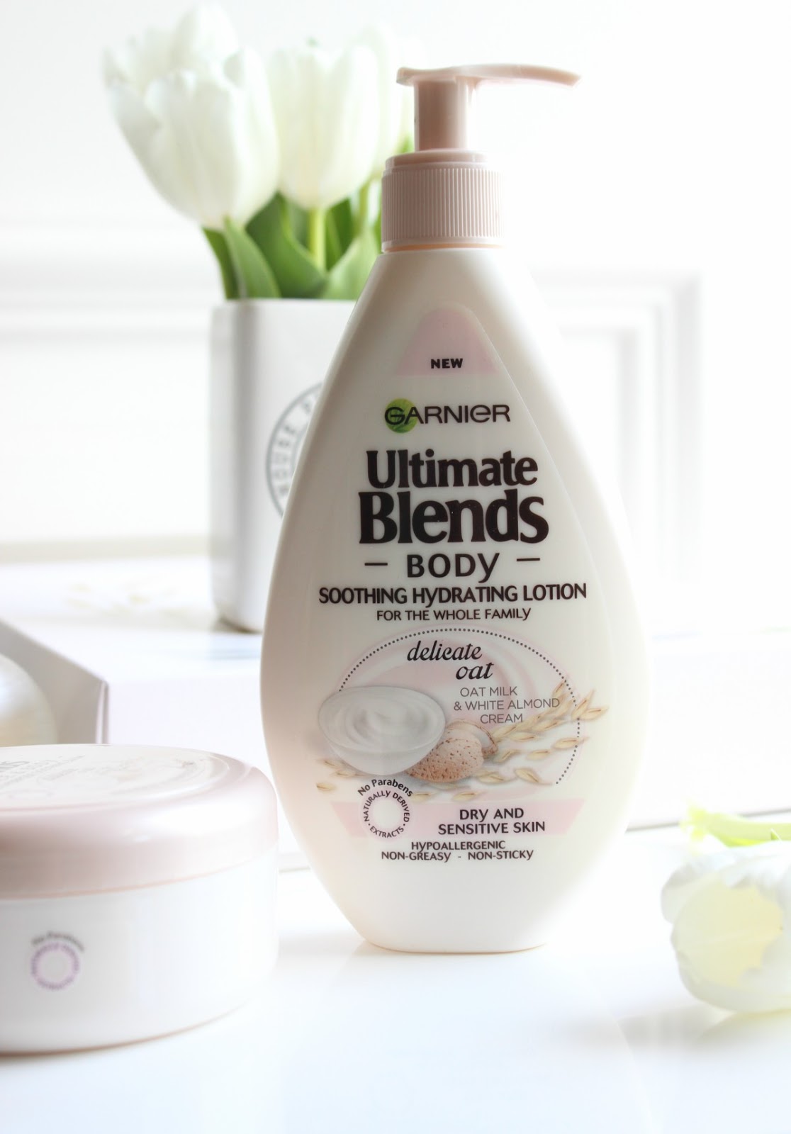 I will be entirely honest in saying that body products such as lotions and oils seldom catch my attention; when I head into the likes of Boots and Superdrug, I'm more likely to be swayed by a new lipstick than a body moisturiser - they are however a necessity for dried out skin, especially since we are all counting down to Summer. One more confession - as much as I appreciate a sorbet scented body cream, they don't always mingle well with my chosen fragrance of the day and on some occasions have been known to break me out. For such reasons I do tend to gravitate towards soft, somewhat milky scented body products - or if possible scent free - making the Garnier Ultra Blends Body Delicate Oat collection the perfect choice. Yes it is fragranced ever so slightly but the gentle, almond-come-milk based aroma evaporates quickly meaning it does not interfere with anything layered on top.
