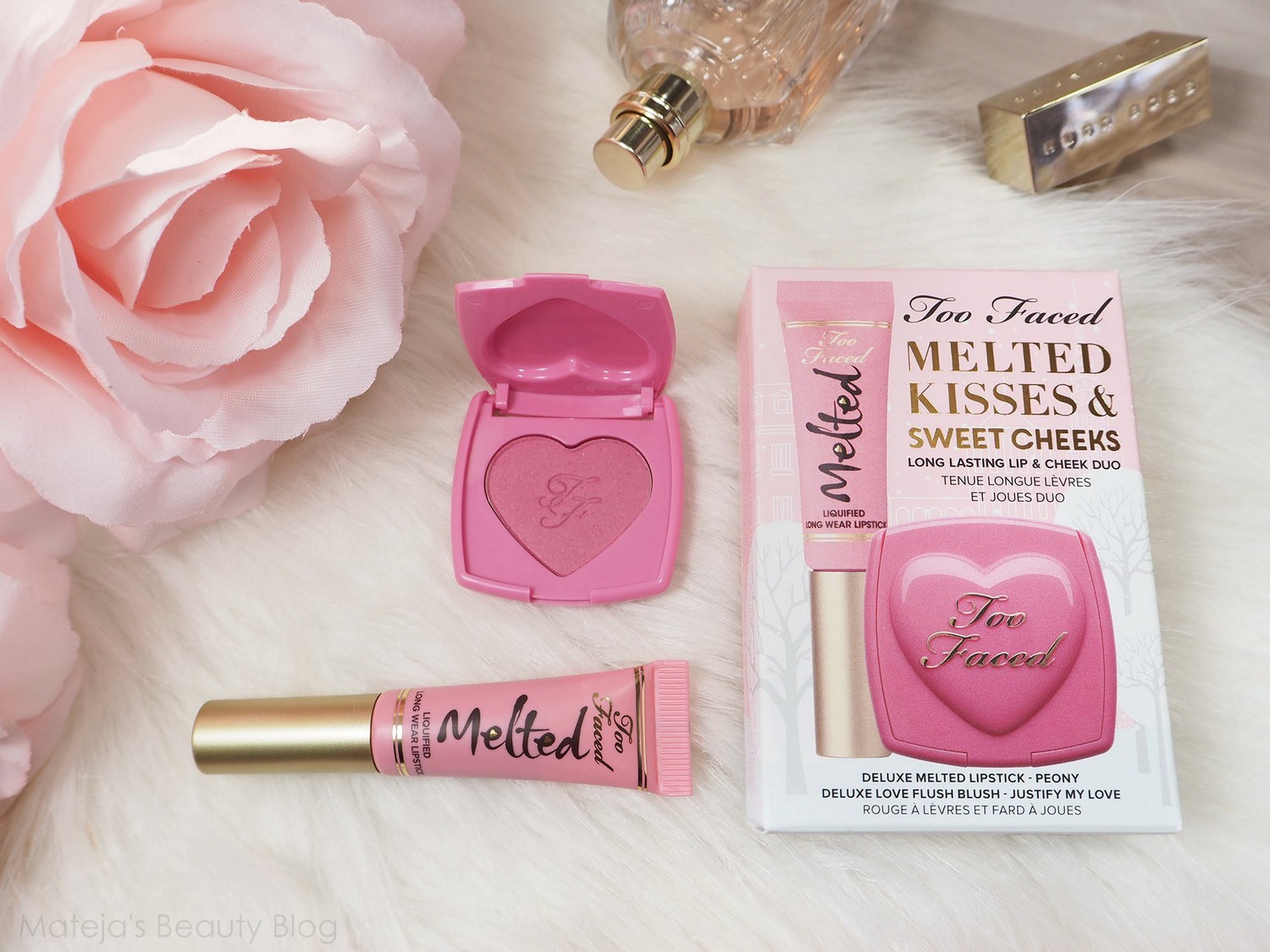 Those who are regular readers on my blog might find it odd I've picked such colours for myself, since I never wear them, but Too Faced Melted Kisses & Sweet Cheeks Gift Set was the only set available in Sephora (sometime around Christmas) and I was just so curious how these two products perform that I settled on Barbie pink. Besides I don't have any such shades in my collection anyway, so why not expand it with something different.